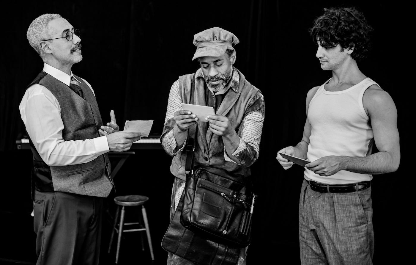 A peça também serve de veículo para as habilidades de seu elenco. De um lado, Rodrigo (que parece especializar-se em interpretar figuras relacionadas ao universo literário) demonstra uma atuação mais experiente e madura, sempre solar, e seus dons para o piano. De outro, Caio (que parece especializar-se na atuação em dramas históricos que envolvem ditaduras) demonstra a vitalidade de um jovem artista e exibe seus talentos na bateria, piano e também no canto.