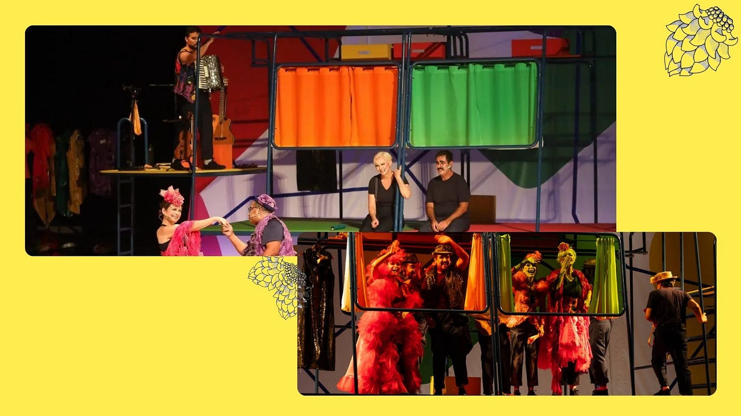 Ainda assim, Os Mambembes é um espetáculo muito bonito e divertido de assistir. As risadas explodiam pelo Tuca de tal forma que me fizeram pensar como são peças como essa – carismáticas, com um elenco afiado e bem entrosado – que fazem o trabalho de formação de público para o teatro. No fim das contas, é uma pena que ela esteja sendo apresentada em uma temporada tão curta no Tuca, um teatro frequentado mais por pessoas de classe média alta, e com a inteira a R$160,00. Não deixo de pensar o quão delicioso seria assistir a esse espetáculo em uma longa temporada gratuita no Parque Água Branca (como ocorreu com a produção de Mundaréu de Mim, de Vitor Rocha, feita pelo iBT) ou ao menos no Teatro Popular do Sesi.